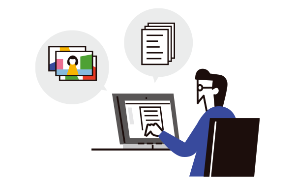 まずはお客様にて、掲載する内容の原稿・素材をご用意ください。 (文章はText、Word、Excelなど、写真もデジタルデータでご提供ください)